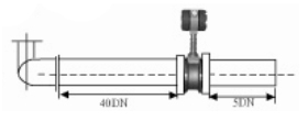 3.彎管的安裝 如果流量計的前端有90°彎頭或T型接頭,要保證流量計的前直管段≥15D,后直管段≥5D |